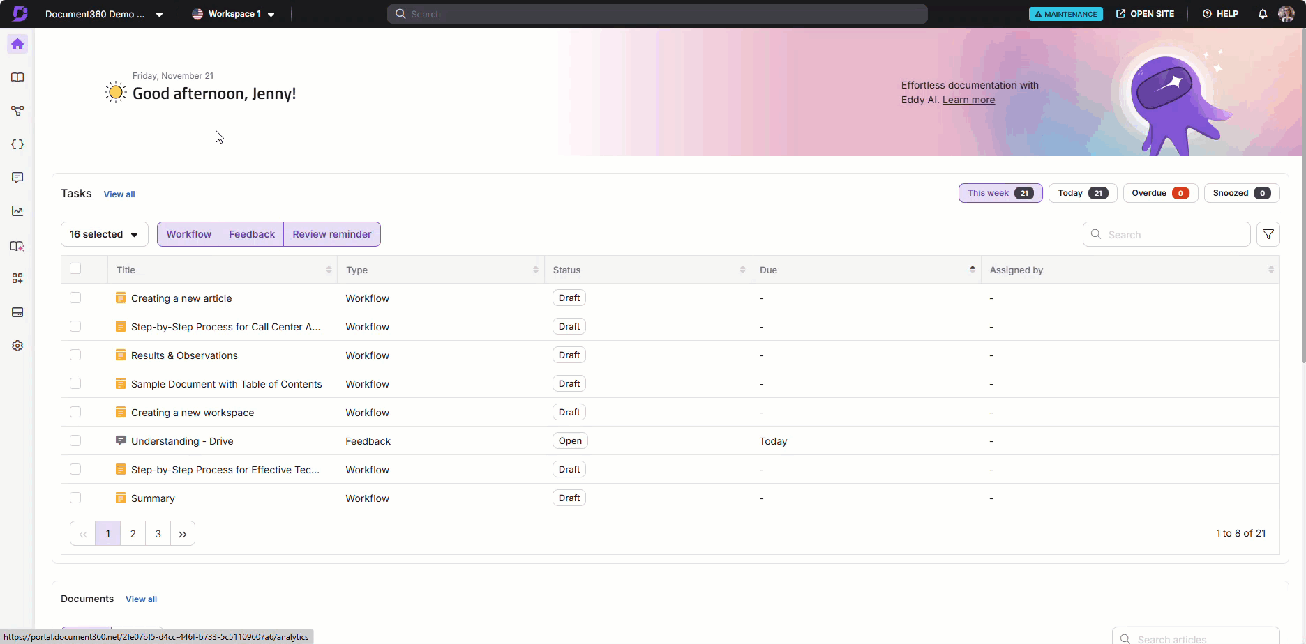 Naviguez jusqu’à Documentation () dans la barre de navigation de gauche dans le Knowledge base portal.