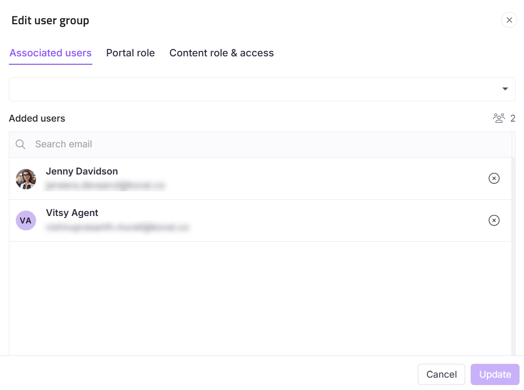 Dans le panneau Modifier le groupe d’utilisateurs , la section Utilisateurs associés apparaîtra.