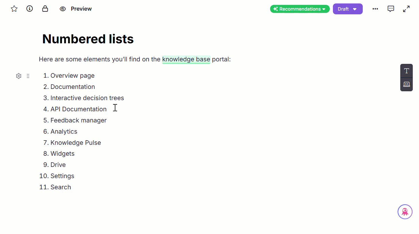 Ctrl + Shift + 7ofCtrl + Shift + O.Formaatmenu: Selecteer de gewenste inhoud, ga naar Format (), en kies het pictogram Genummerde lijst ().