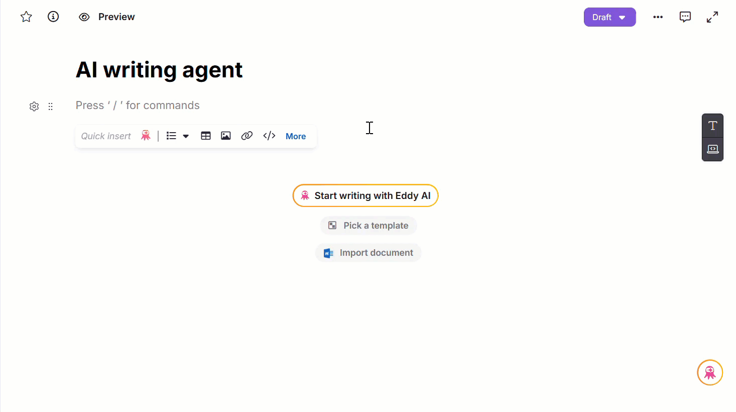Begin met schrijven met Eddy AI, kies een sjabloon en importeer documentatie