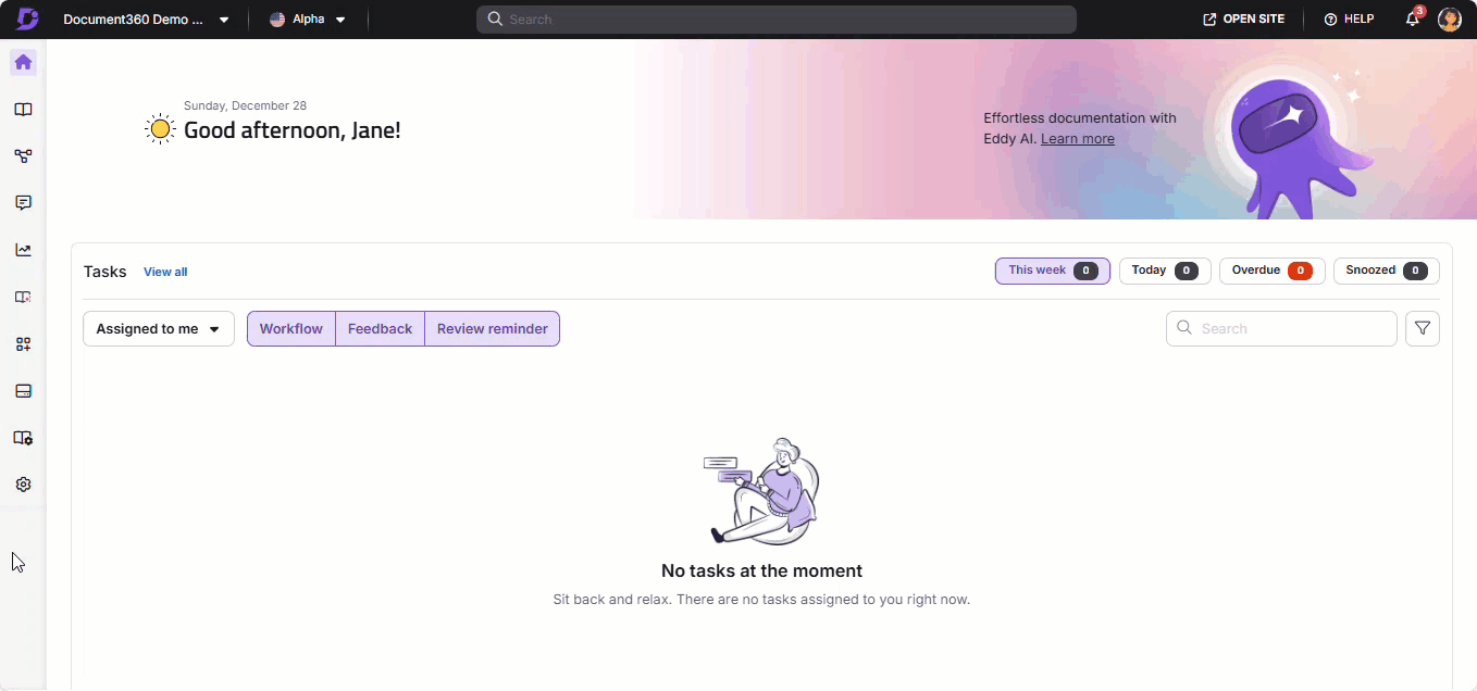 Je kunt het Crowdin en het Document360-project naast elkaar bekijken.
