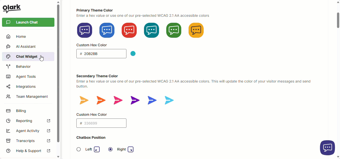 Log in op je Olark en ga naar de Chatwidget.