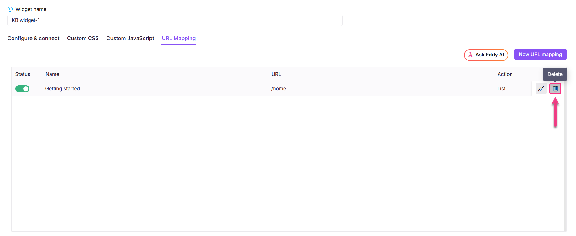 Om URL-mapping te configureren, voer je specifieke acties uit binnen de knowledge base-widget voor aangewezen URL's.