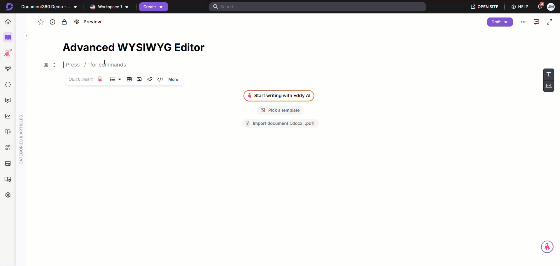 Private notes are a useful feature in Document360 that allow project team members and specific reader groups to see content that remains hidden from the general public. These notes can be added to articles in both the Markdown and Advanced WYSIWYG editors, giving you more control over what content is visible to different audiences.