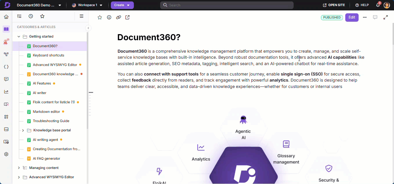 Share articles with external readers using a private link even before publishing the content. This feature allows you to generate a unique link for any article. With this link, you can grant access to the content for users who do not have access to your knowledge base portal or site. You can share these private links with external users outside your Document360 project (users or reader groups) and deactivate or regenerate the links at any time to manage access as per your preferences.